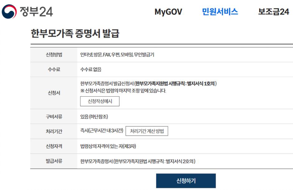 한부모가족 증명서는 인터넷으로 쉽게 발급가능합니다.