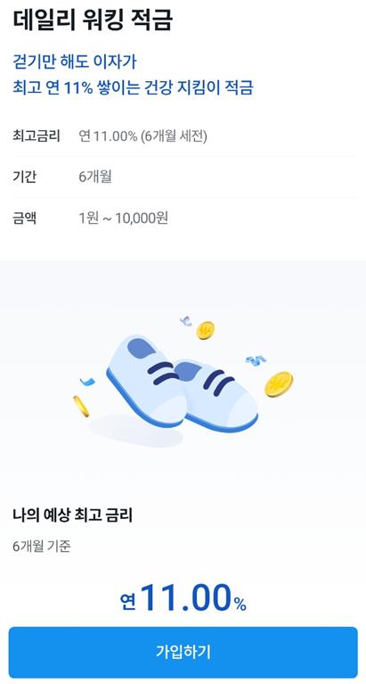 매일 만보씩 걸으면 최대 11%의 적금 이자를 받을수있다는게 놀라지 않나요?.