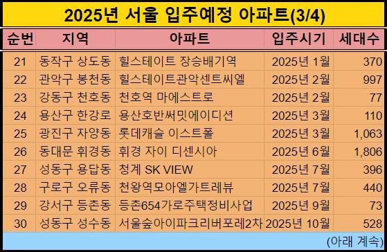 추가적으로 2025년 서울 입주예정 아파트도 하는김에 같이 알려드렸습니다.