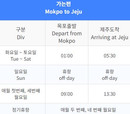 이렇게 목포에서 제주도가는 배 시간표를 올려드립니다.