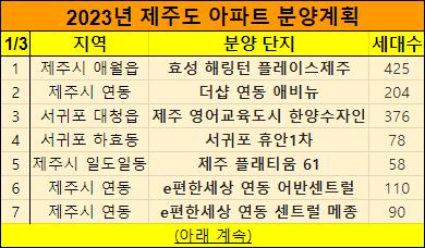 2023년 제주도 아파트 분양계획을 표로 만들었습니다.