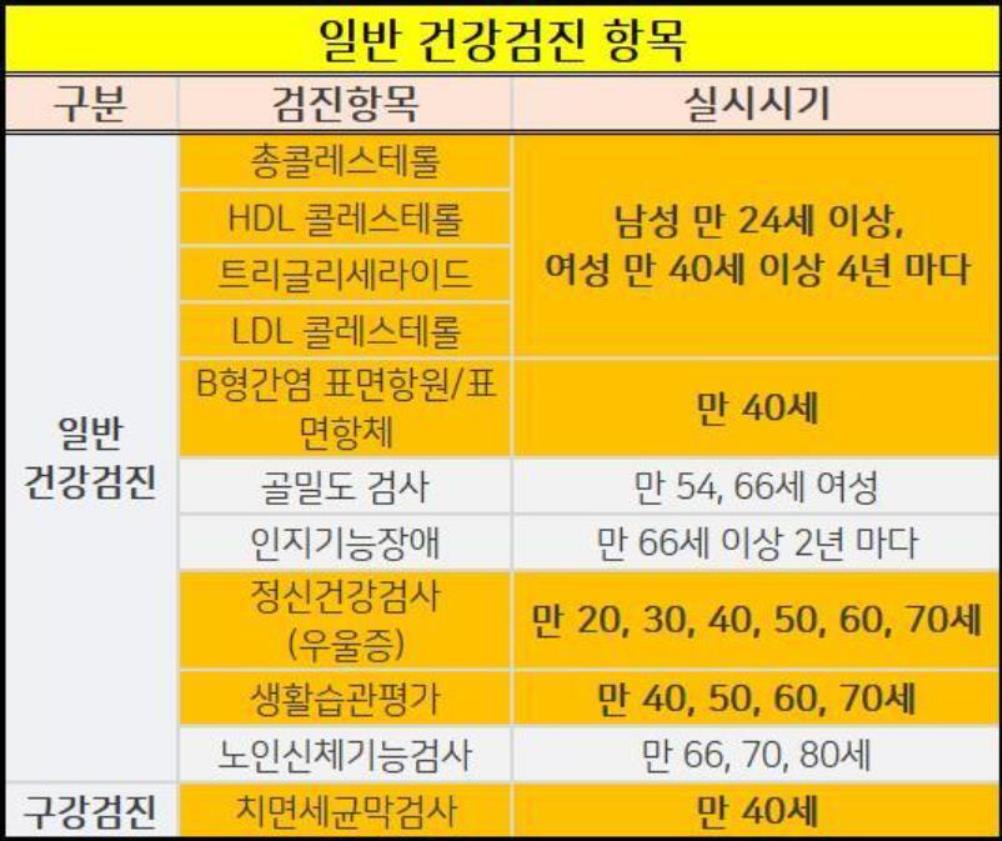 만 20세부터 기본 건강검진시 받을수있는 검사 항목들도 확인하세요.