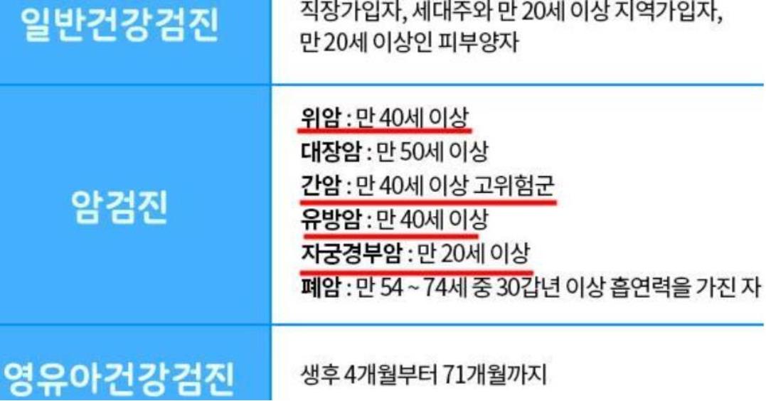 첫번째. 위암, 간암(고위험군) 건강검진 : 만 40세이상 대상자.