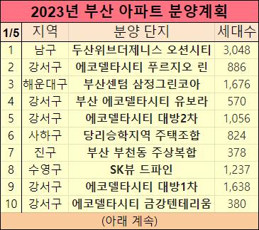 2023년 부산에 분양예정인 아파트들을 정리했습니다.