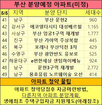 부산 아파트 분양일정을 표로 만들었습니다.