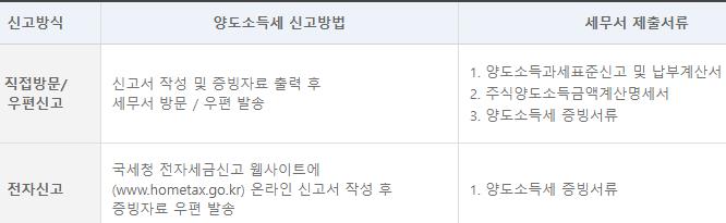 해외주식 신고는 국세청 홈택스와 세무서 방문하는 방법이 있습니다.