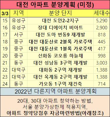 아래 2023년 대전 분양예정아파트들도 표로 만들었으니 참고하세요.