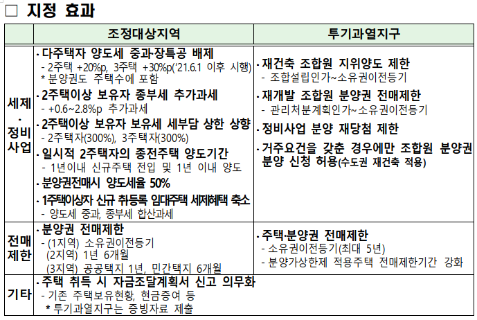 전국 조정대상지역과 투기과열지구 지정 현황을 파악하셨으면 왜 중요한지에 대해서 좀더 세부적으로 알고싶은분들은 아래에 표로 정리해놨으니 참고하세요.