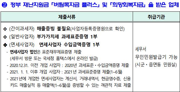 예전에 정부 재난지원금 버팀목자금 플러스와 희망회복자금을 받은분들은 매출증빙서류를 제출해야합니다.