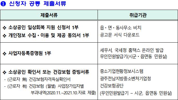 첫번쨰. 전라남도 소상공인 일상회복 지원금 신청서 양식 1부(첨부파일)
