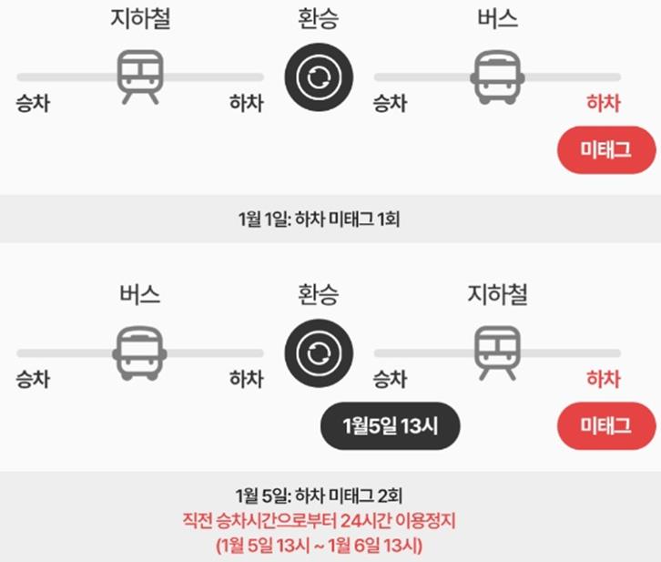 만약 하차 태그를 2회 이상 찍지않고 내리면 기후동행카드 사용이 중지됩니다.