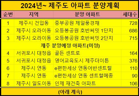 아래 제주도 아파트 분양계획표를 참고하세요.