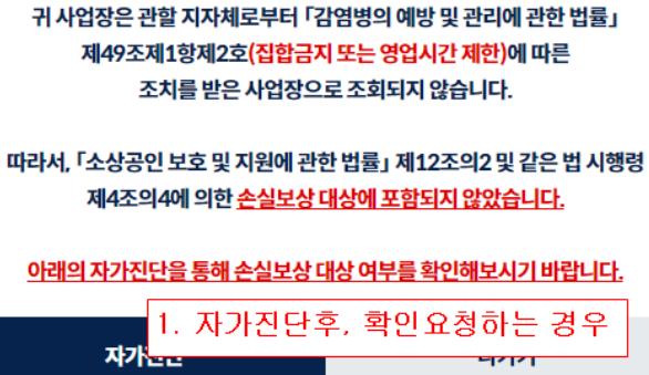 소상공인 손실보상 대상자가 아닙니다라는 2가지를 확인해야합니다.