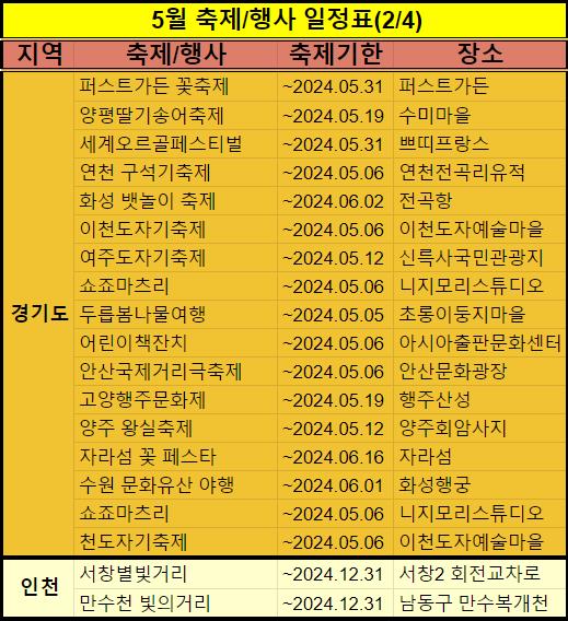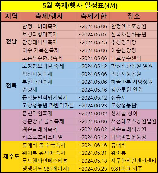 2024년 5월 축제 및 행사 일정을 정리했습니다.