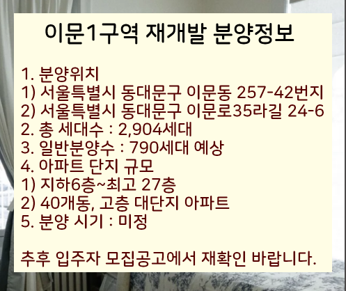 서울특별시 동대문구 이문1구역 재개발, 래미안 아파트 분양에 대해서 알아보겠습니다.