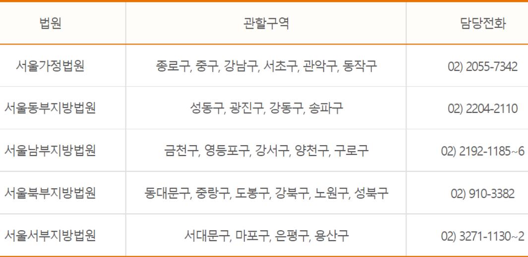 서울가정법원과 각 지역별 지방법원 연락처를 남겨놨습니다.
