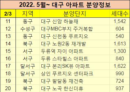 2022년 5월이후 대구에 분양예정인 아파트들을 정리했습니다.