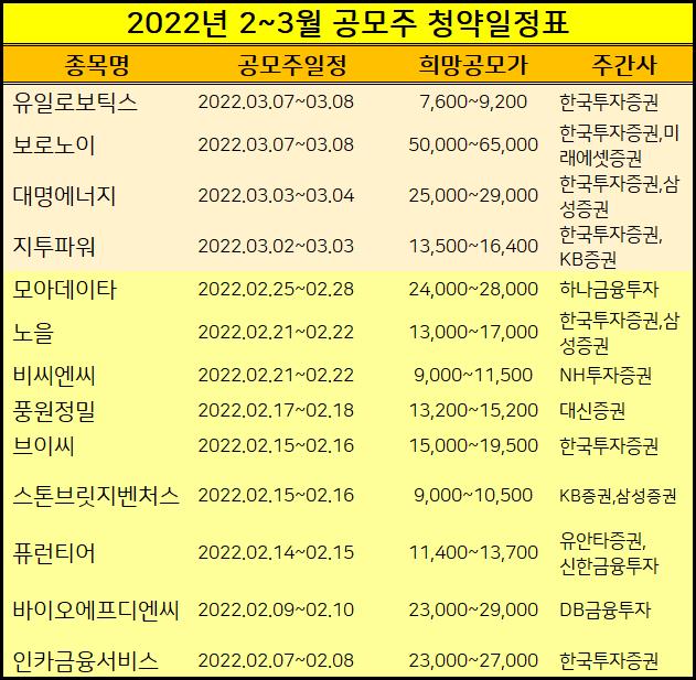 2022년 2월에 IPO진행하는 공모주 청약일정을 정리했습니다.