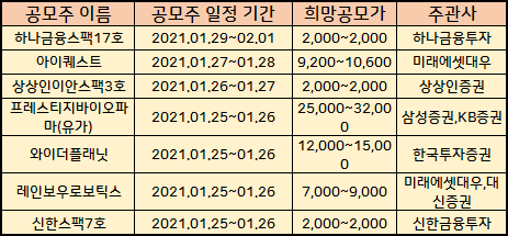 2021년 1월 공모주 청약일정을 알려드리겠습니다.