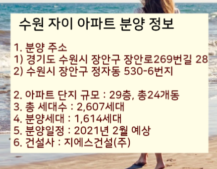그럼 이제 수원 자이 아파트 분양정보를 요약해보겠습니다