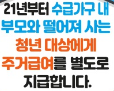 2021년 30세 미만의 자취하는 저소득 청년들은 주거급여를 받을수있습니다.