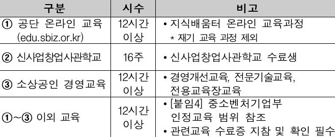 2. 중소벤처기업부 교육과정 12시간 이상 수료한 소상공인 및 자영업자.