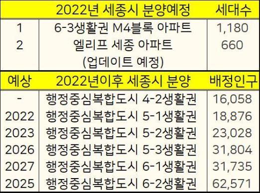 2022년이후에 세종시 아파트 분양계획을 정리했습니다. 아직 시공사 선정이안된 개발구역(4-2생활권 / 5-1,2,3생활권 / 6-1,2생활권)은 2022년~2027년까지 분양예정입니다. 아래 2022년 대전, 서울, 경기
