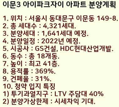 이문3구역 아이파크 자이 아파트 분양계획을 정리했습니다.