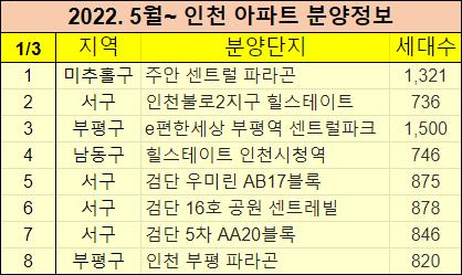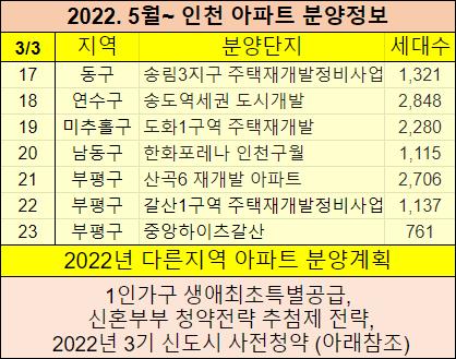 2022년 5월이후 인천 분양예정 아파트들을 정리했습니다.