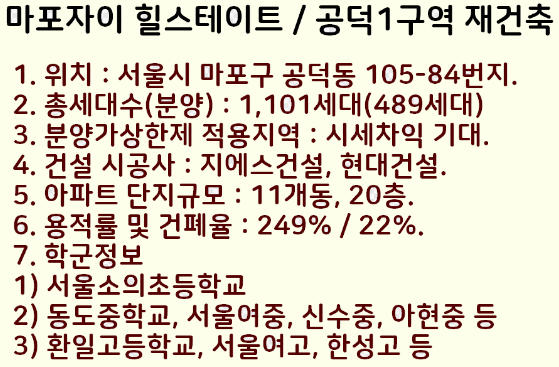 마포 자이 힐스테이트 아파트 분양단지가 그렇지않을까싶습니다.