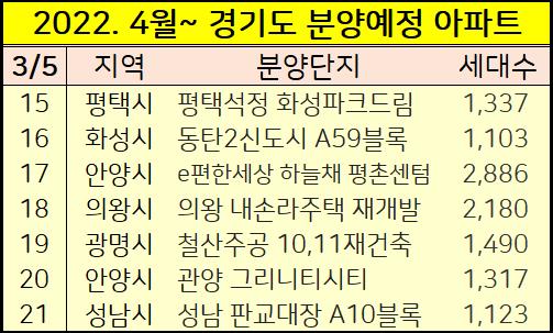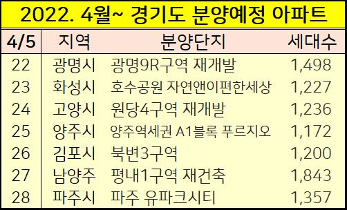 2022년 4월부터 2023년까지 경기도 아파트 분양일정을 정리했습니다.