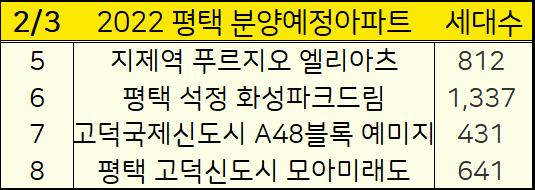 2022년이후 평택시에서 분양예정인 아파트들을 정리하였습니다.