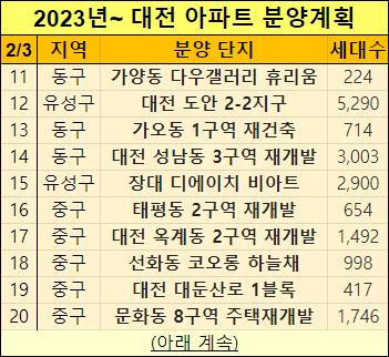 이렇게 2023년 대전광역시 아파트 분양계획을 표로 정리했습니다.