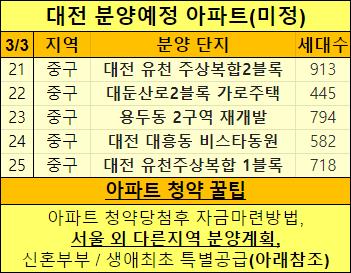 총 25개의 대전 분양예정 아파트를 정리했습니다.