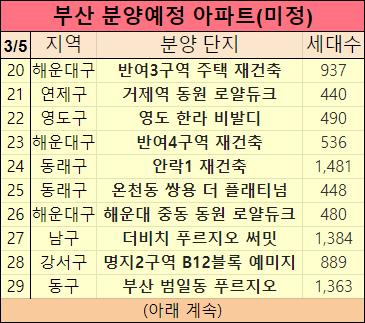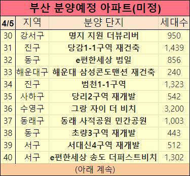 부산 아파트 분양일정을 표로 만들었습니다.