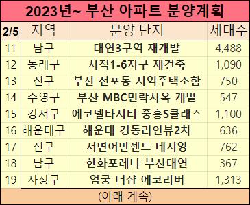 2023년 부산에 분양예정인 아파트들을 정리했습니다.