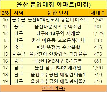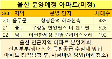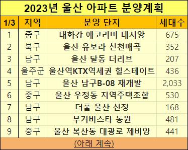 이렇게 2023년 울산에 분양예정인 아파트들을 정리해서 알려드렸습니다.