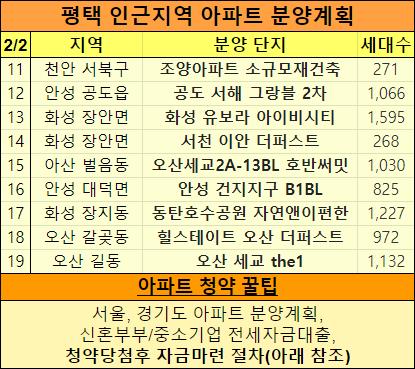 2023년 평택 아파트 분양계획을 표로 정리했습니다.