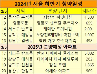 이렇게 2024~2025년 서울 아파트 분양일정을 정리해서 알려드렸습니다.