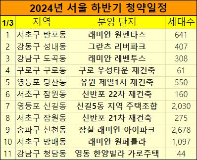 2024년 하반기 서울 청약 일정을 정리했습니다.