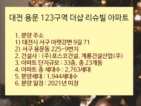 생활권이 대전이신분들에게는 대전 용문123구역 더샵 리슈빌 아파트가 더욱더 좋은 청약이 될수있다고 생각합니다.