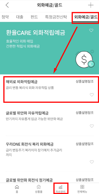 각 은행마다 외화통장 종류가 다릅니다.