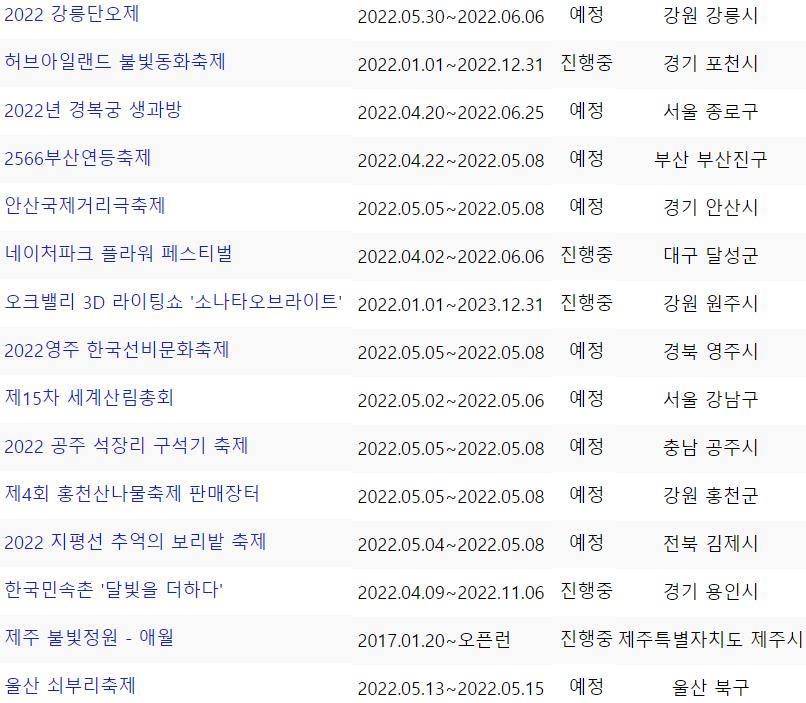 아래 5월 꽃축제 일정표를 확인하세요.